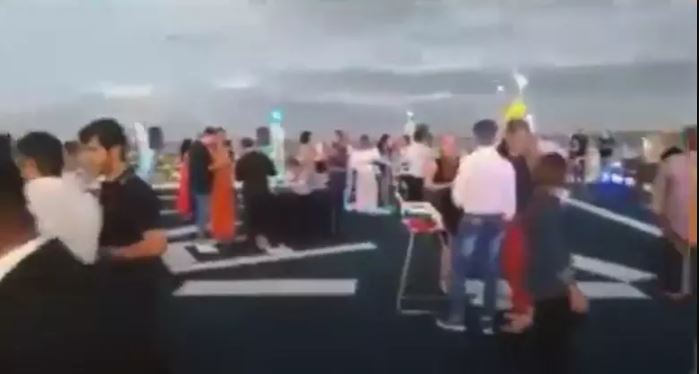 Sem máscara, convidados se aglomeram em heliponto de hotel em frente à Torre de TV