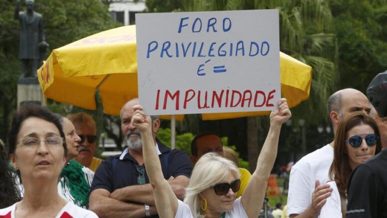 Por conta disso, percebe-se que o foro privilegiado é uma forte ferramenta a serviço da impunidade pois, em vez de proteger a função pública de eventual pressão ou constrangimento, o foro é utilizado como um escudo contra a aplicação da lei.