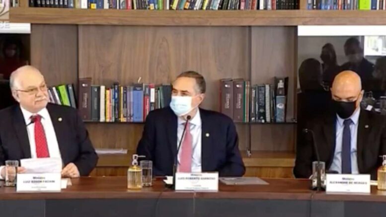 A afirmação ocorreu durante entrevista coletiva, na tarde desta quarta-feira (16), com as presenças dos colegas de toga, Alexandre de Moraes e Luis Roberto Barroso, atual presidente do TSE e que tem proferido ataques a Bolsonaro de forma rotineira.