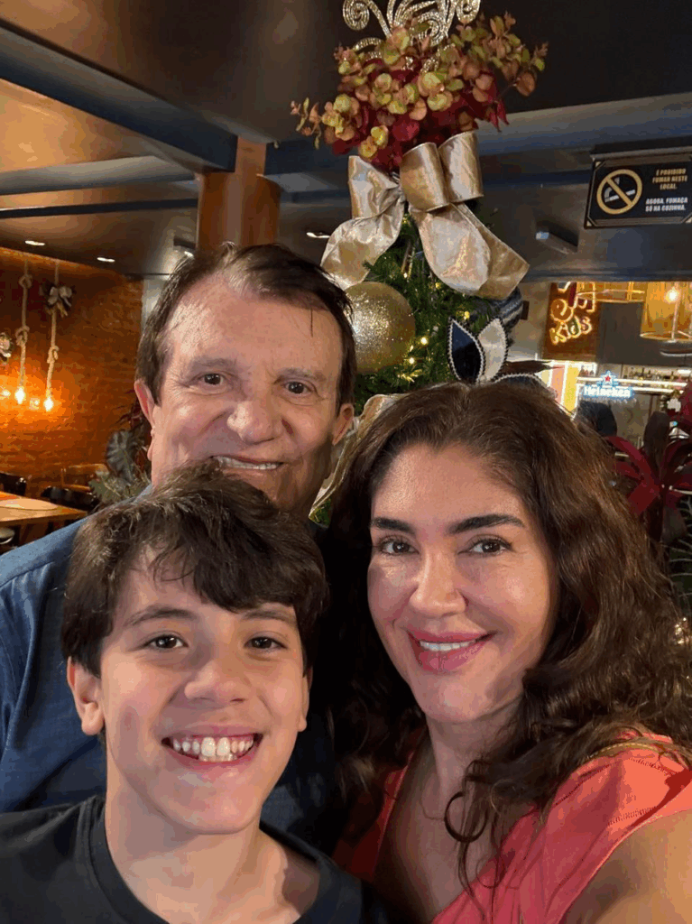 Ana Cristina ostenta no rosto um estado de perene felicidade, seu estado natural faz muito feliz o esposo Estenio e o filho João Gabriel que completa a plena alegria do ditoso casal.