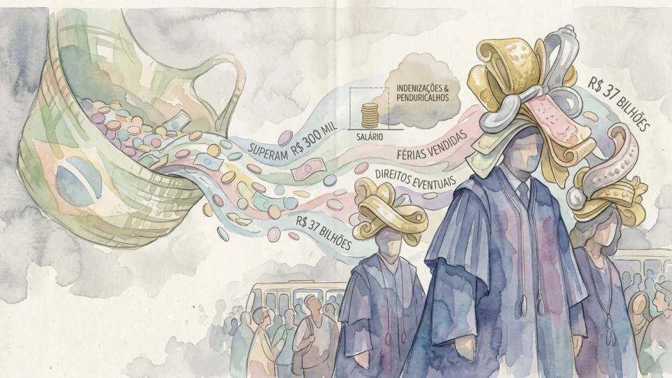 Desde setembro de 2017 até 2025, essas verbas milionárias – e pouco transparentes – custaram R$ 37 bilhões aos cofres públicos. Desse total, R$ 12 bilhões vieram de pagamentos retroativos, R$ 5,8 bilhões de “férias vendidas” e R$ 10,5 bilhões da categoria “outros”.