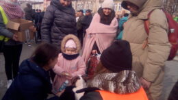 Refugiados, jornalistas e soldados voluntários comem Kotelet (frango empanado) com kapusta (salada de repolho) em um restaurante cheio, um dos únicos abertos após às 22h no centro da pequena cidade de Przemysl, fronteira da Polônia…
